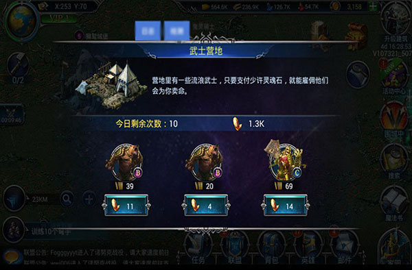 如果你觉得自己灵魂石太多,想要快速、有效的获得兵种,那么就去世界中的武士营地,在这里,你可以看到各种强力兵种,只需要付出少量的灵魂石即可将它们收入囊中,归入到队伍里。