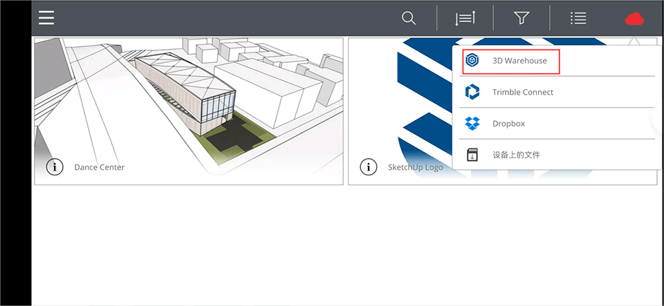 1、直接从3D模型库,Trimble Connect和Dropbox打开或下载模型。您还可以使用Android的“打开方式”功能打开模型,例如,打开以电子邮件附件形式发送的.SKP文件时。