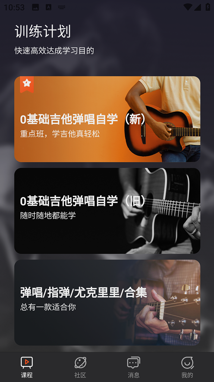 1、在本站下载安装app,进入软件,主界面展示各类弹唱课程供体验。