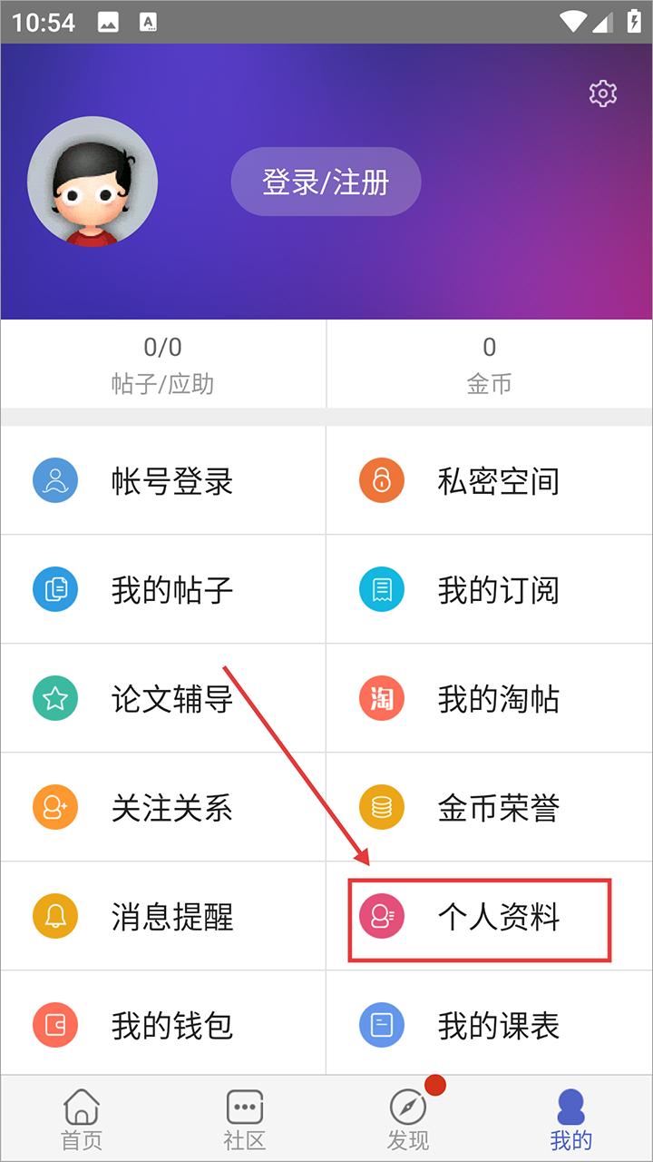 2、如果没有登陆,需要进行登陆,登陆成功后,找到个人资料;