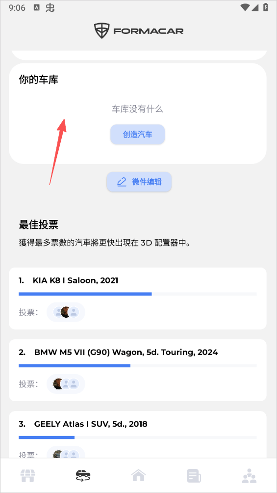 4、同时你可以将自己创造的车放在车库里方便随时查看