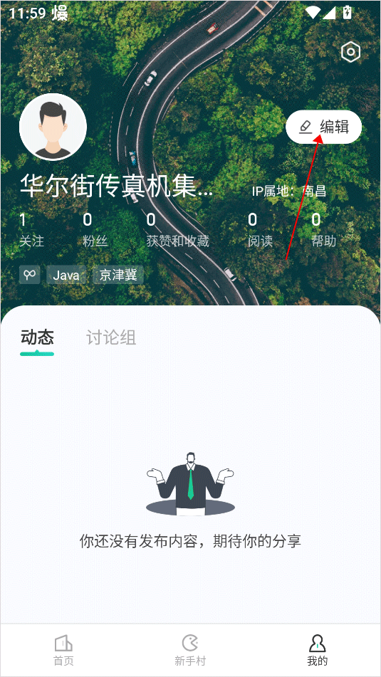 2、来到我的页面,再点击编辑选项;