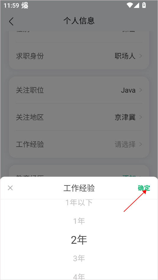 4、最后在弹出的页面当中选择真实的工作经验,点击确定按钮即可。
