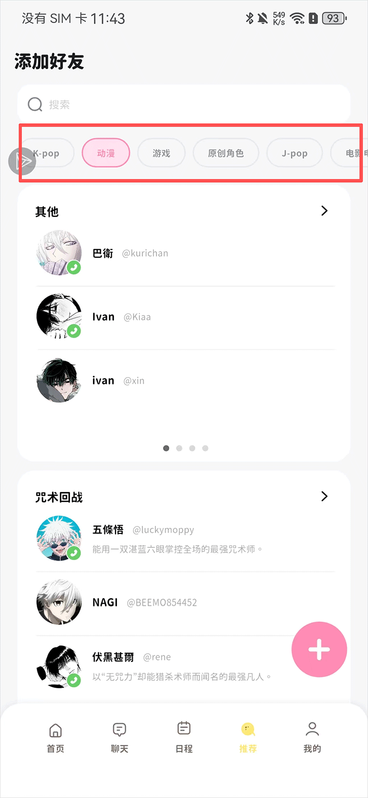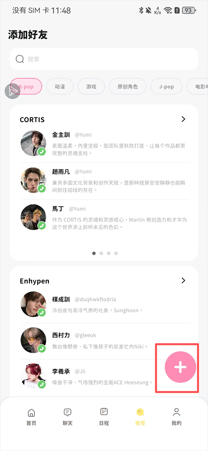 1、在app推荐界面内点击右下角+号按键