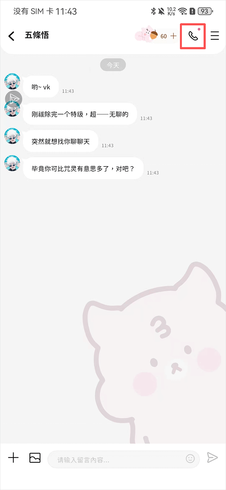 2、进入聊天界面内点击右上角电话图标