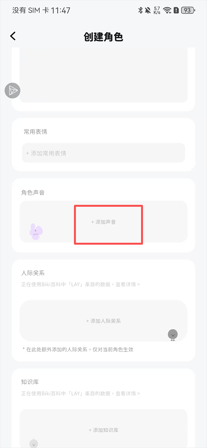 2、在创建角色界面内点击添加声音