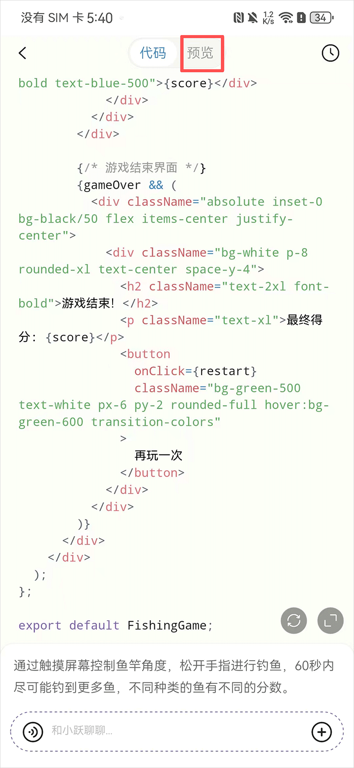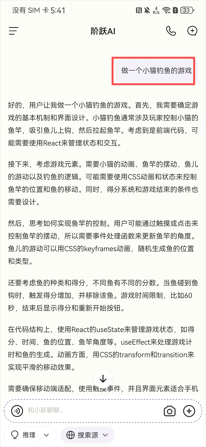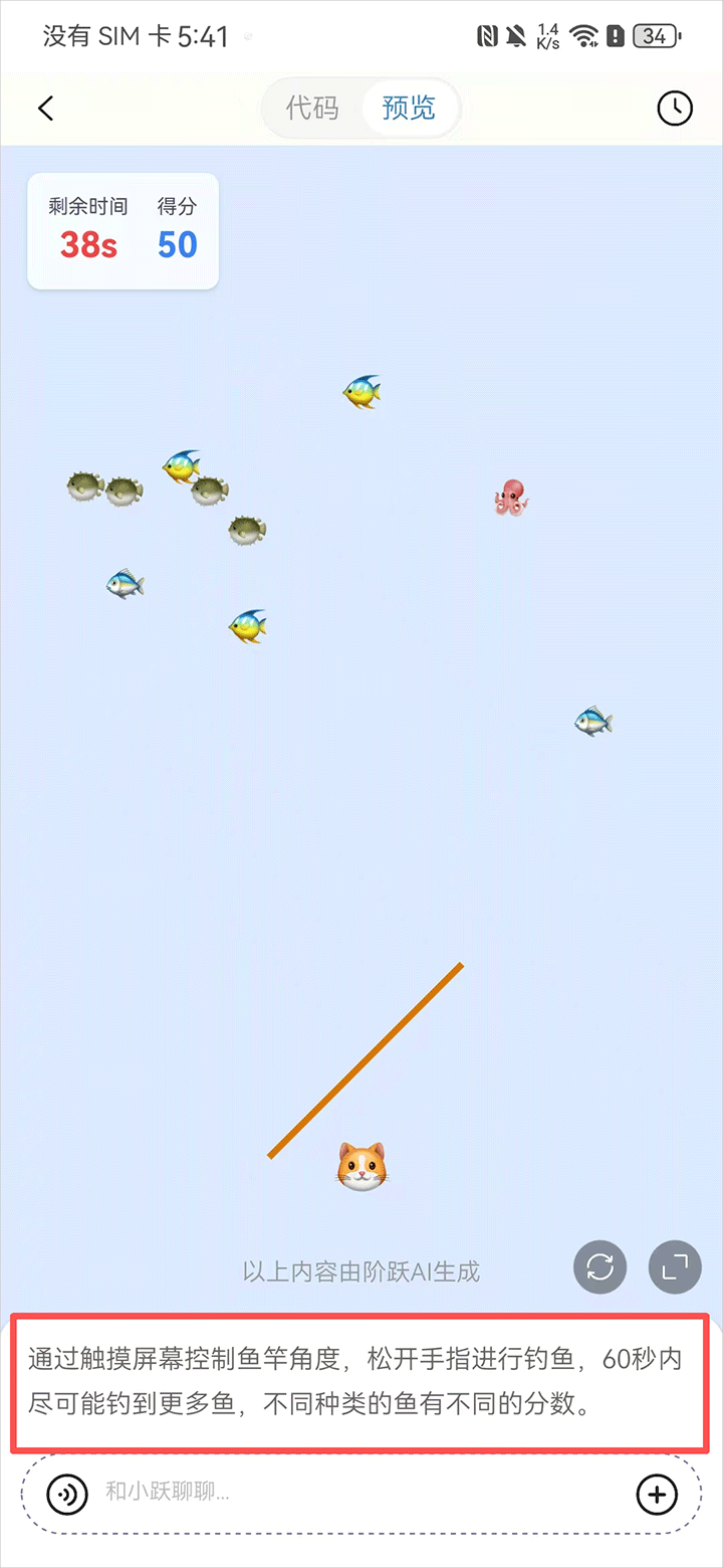 2、输入你要生成的游戏的内容,例如小猫钓鱼的游戏