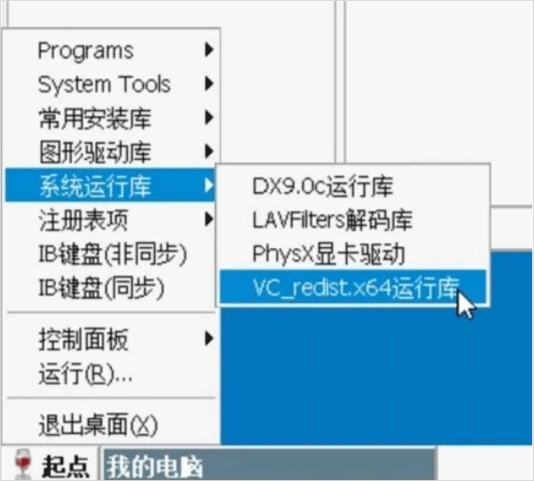 点击起点→系统运行库VC_reist.X64运行库 弹出窗口点我同意点安装 安装完成关闭