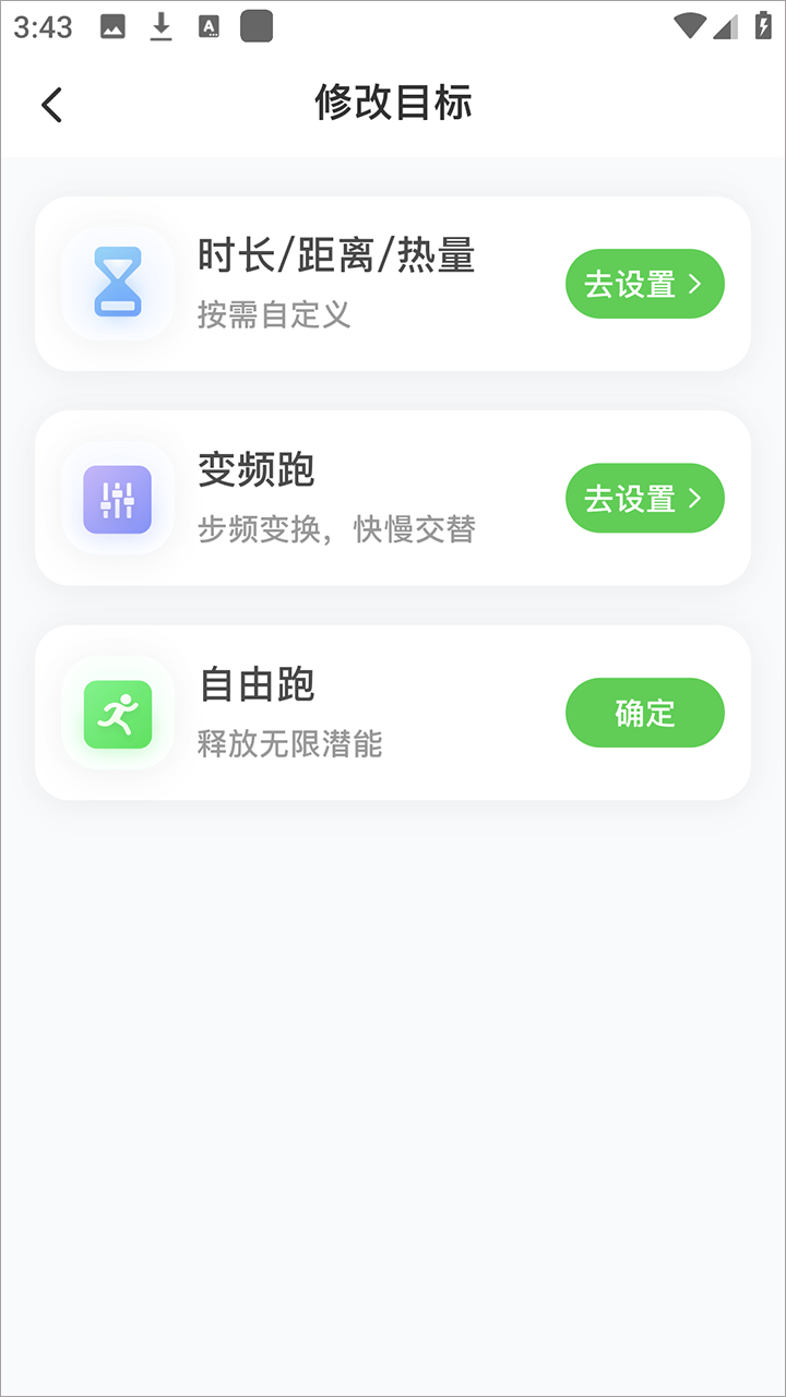 每天一个小目标,设置锻炼时间,即可启动超慢跑计时器,定时提醒。